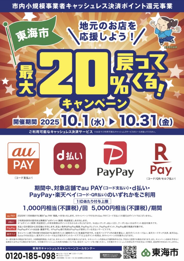 もちろん東海市にお住まいの方でなくても対象のお店で決済していただければ還元されます。