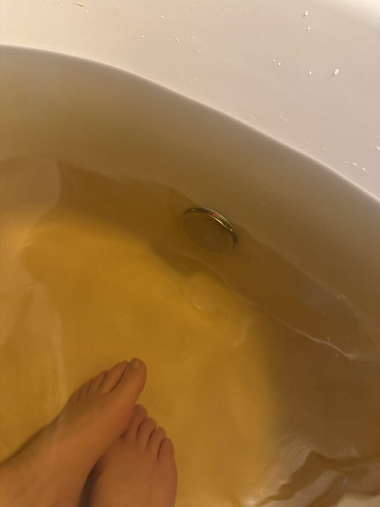 今はよもぎ風呂に浸かっています。